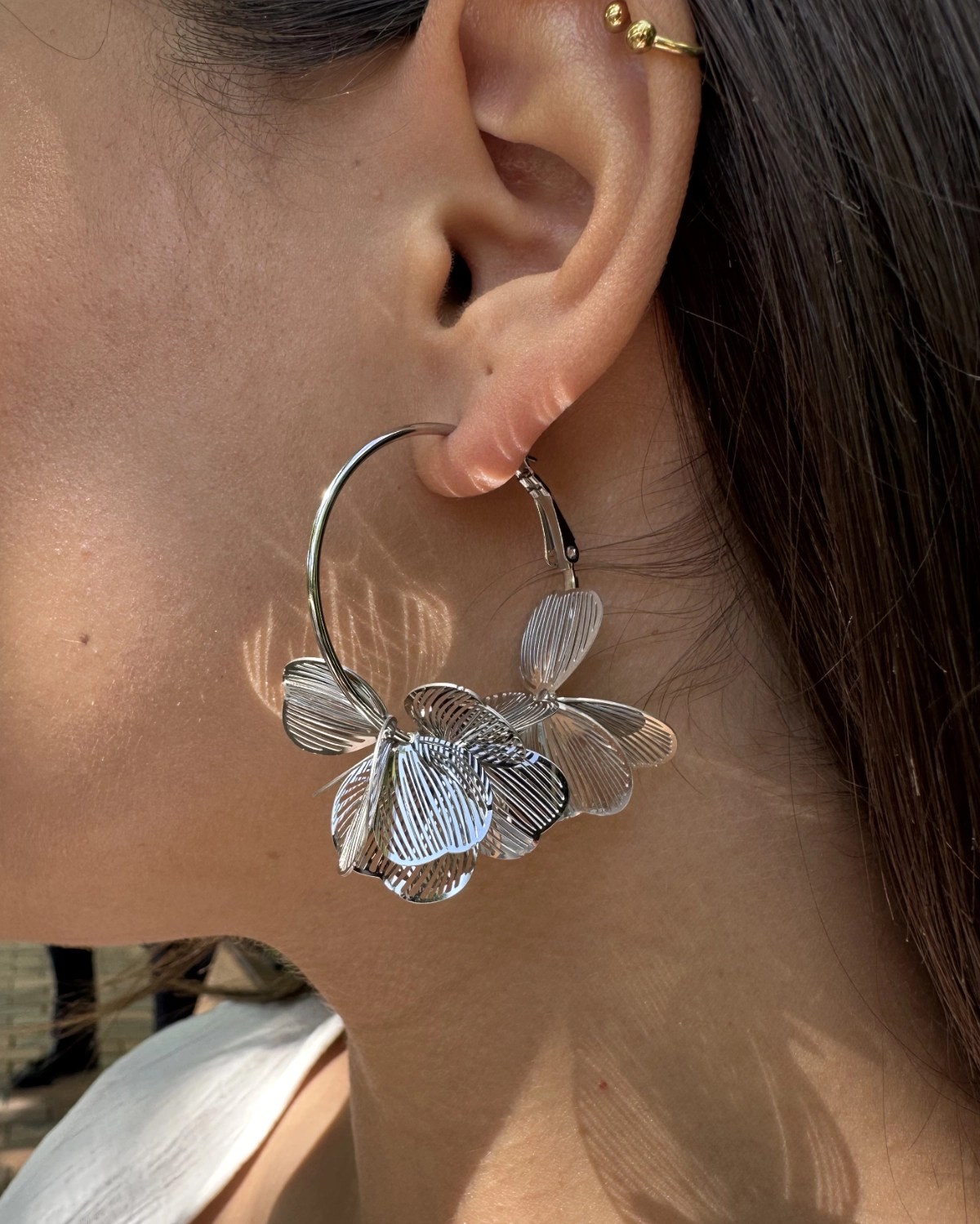Pendientes de acero con cierre de aro y colgantes en forma de pétalos de flor.